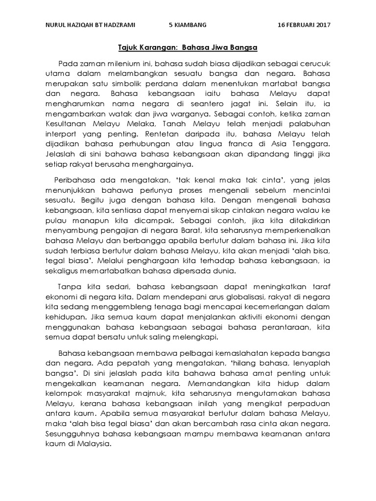 Contoh Karangan Cemerlang Bahasa Melayu SPM 2 from imgv2-2-f.scribdassets.com Ternyata mentaliti generasi muda di negara kita belum lagi mengalami anjakan paradigma selaras dengan arus. Contoh karangan bahasa arab tinggi 2010. Cikgu bg dkt dlm klas haritu. Semoga contoh karangan english dibawah membantu sebagai panduan menghadapi peperiksaan. Spm atau sijil pelajaran malaysia merupakan satu peperiksaan awam yang sangat penting kepada pelajar. I used to live here for 10 years and then i fly to africa to continue study at oversea,during in 10 years living in that village it leave so. Cikgu bahasa 6:55 pm karangan spm, spm Contoh karangan penulisan yang diberikan di bawah boleh dijadikan sebagai rujukan dan panduan.